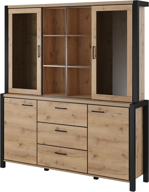 Бюфет Актив с 4 врати, 3 чекмеджета и 6 ниши дъб таурус и черен мат