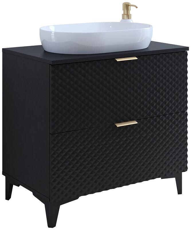 Долен стенен или стоящ шкаф за баня Лаура 80 см с 2 чекмеджета релефен черен мат