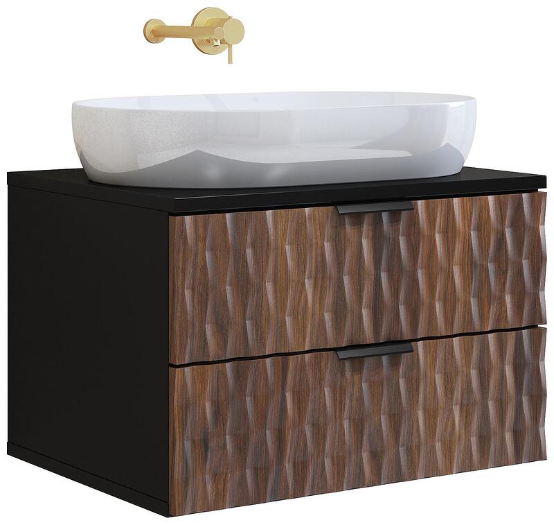 Долен стенен шкаф за баня Ензо 63 см с 2 чекмеджета черен оникс и дъб катания