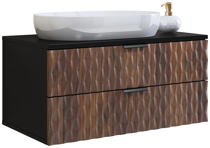 Долен стенен шкаф за баня Ензо 81 см с 2 чекмеджета черен оникс и дъб катания