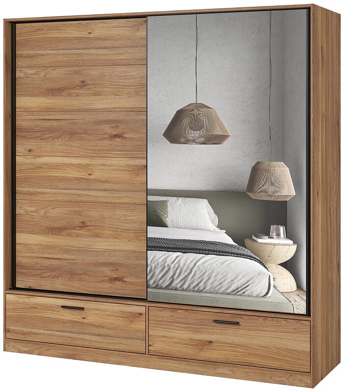 Гардеробът с две плъзгащи врати, две двойни чекмеджета и огледало от колекцията Бета е перфектно съчетание от модерен дизайн, естествени цветове, функционалност и прецизна изработка.