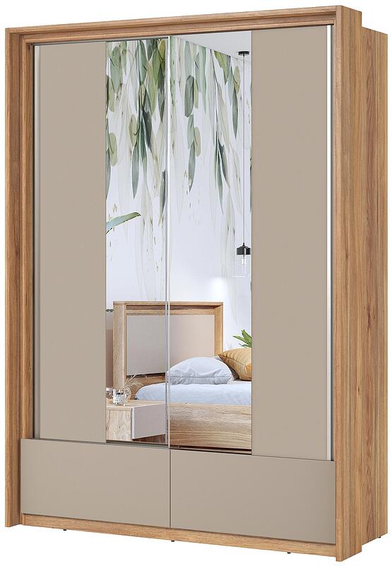 Гардероб Импресио с 2 плъзгащи врати с огледало и 2 чекмеджета дъб маувела и конго мат