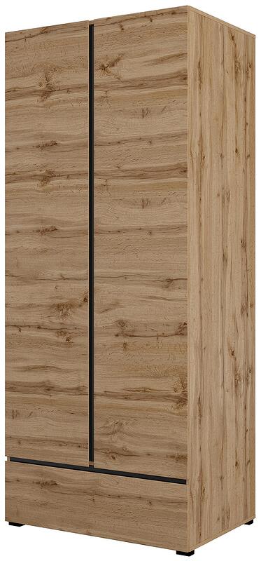 Гардероб Крос с 2 врати и 1 чекмедже дъб вотан и черен мат с дължина 89 см
