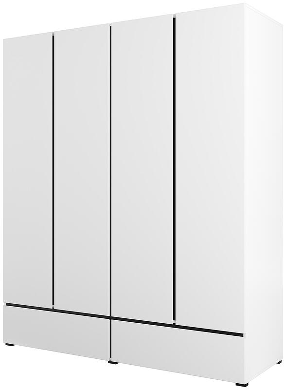 Гардероб Крос с 4 врати и 2 чекмеджета бял и черен мат с дължина 180 см