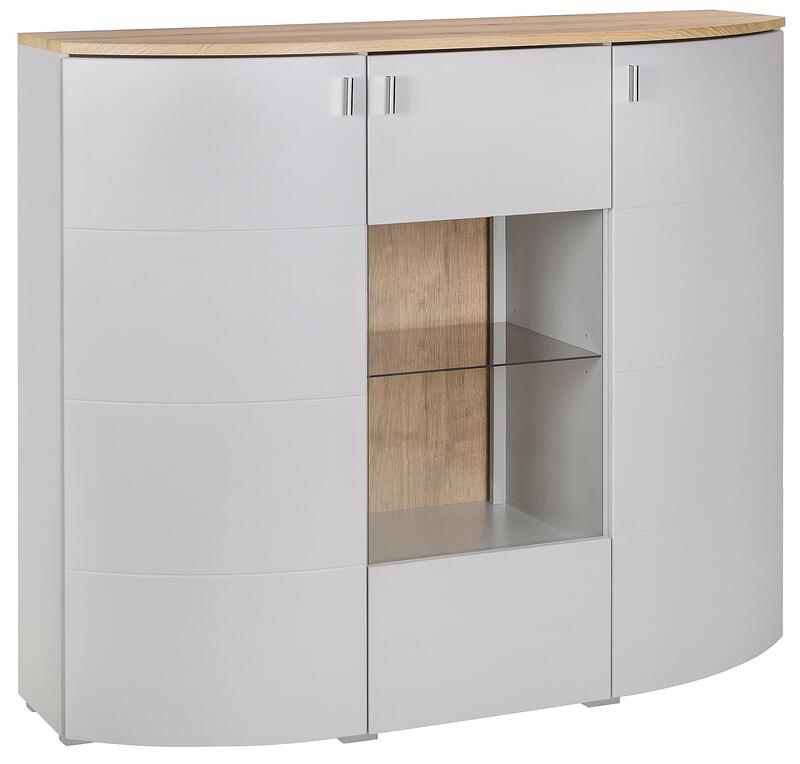 Комод Самбука с 3 врати светло сив мат, дъб евоук и златен харбор