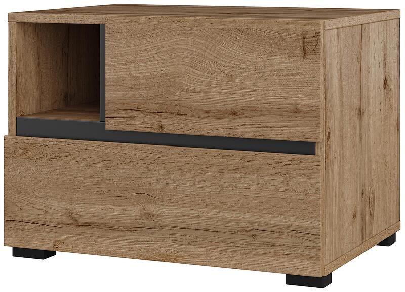 Нощно шкафче Крос ляво / дясно с 2 чекмеджета и ниша дъб вотан и черен мат