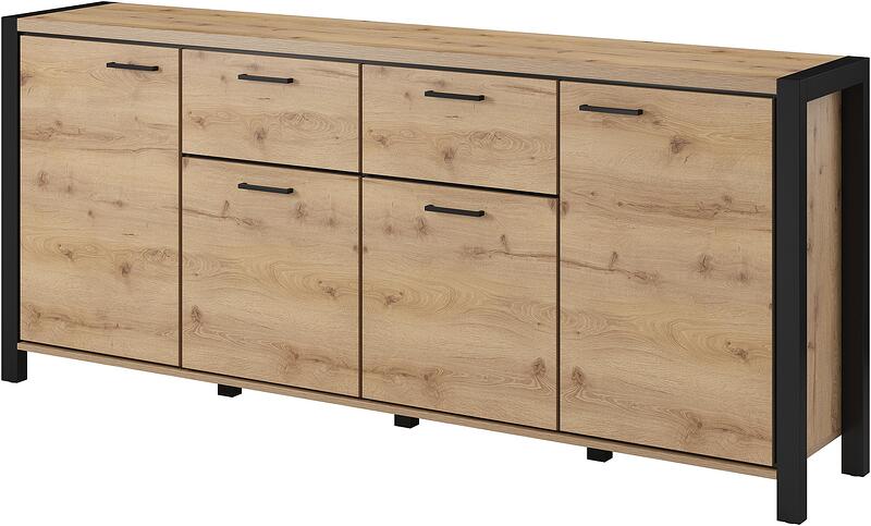 Скринът с четири врати и две чекмеджета от модулната колекция Актив предназначен за всекидневна е с модерен дизайн в индустриален стил /лофт/.
