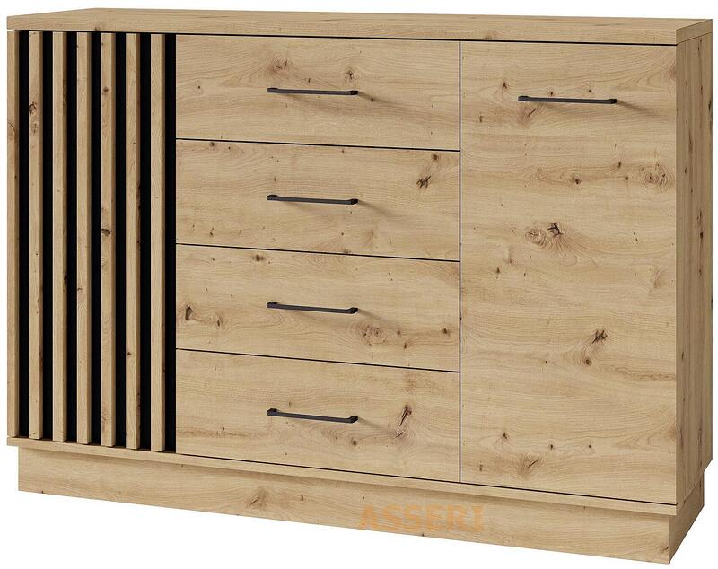 Скрин Артиз с 2 врати и 4 чекмеджета дъб артизан и черен мат