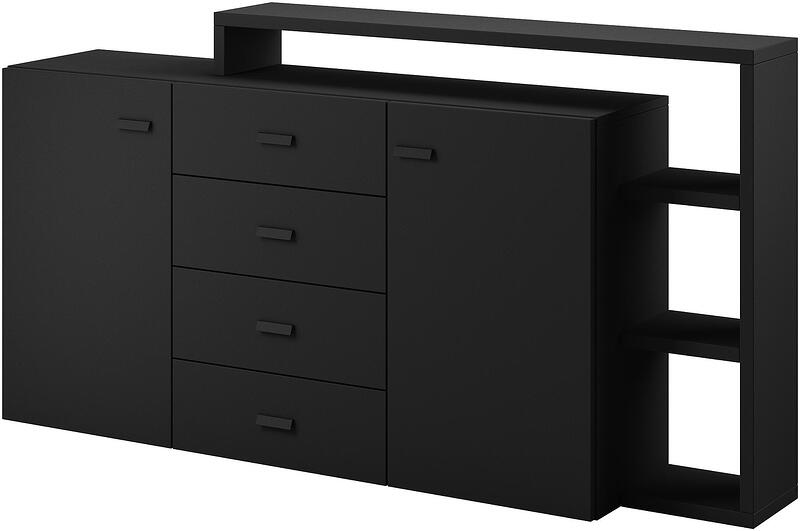 Скрин Бота с 2 врати, 4 чекмеджета и надстройка с полици черен мат