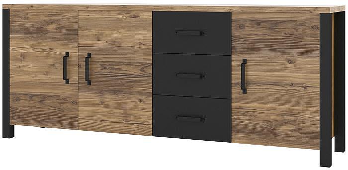 Скрин Олин с 3 врати и 3 чекмеджета апенцелски бор и черен мат