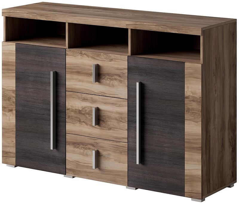 Скринът с две врати, три чекмеджета и три ниши от колекцията Роджър за всекидневна е модерен и функционален.