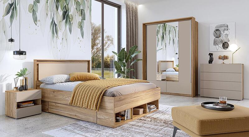 Спален комплект Импресио дъб маувела и конго мат с избор на размер на легло и гардероб