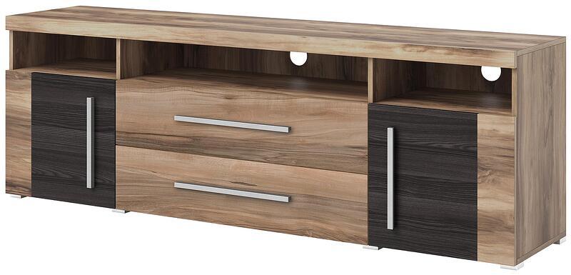 ТВ шкаф Роджър с 2 врати, 2 чекмеджета и 3 ниши орех сатен и тъчууд