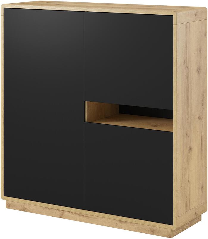 Висок комод Астон с 3 врати и 1 ниша дъб таурус и черен мат