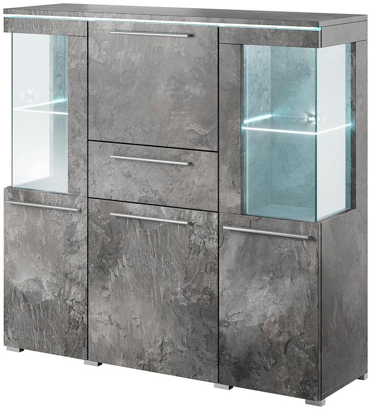 Комодът се предлага в тъмния шифер с ефект на естествен скалист камък и създава усещане за спокойствие и уют.