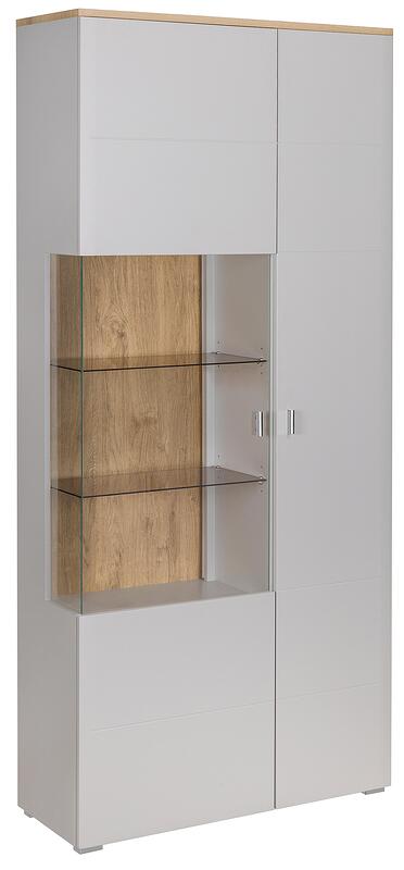 Витрина Самбука с 2 врати светло сив мат, дъб евоук и златен харбор